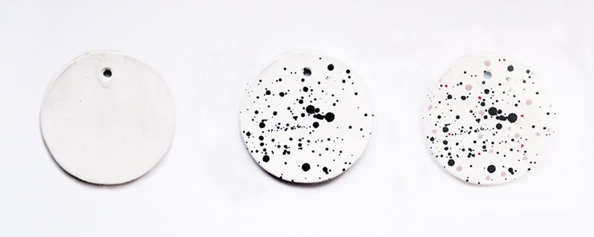 Laat de klei vervolgens eerst uitharden (of bak het in de oven als je niet vanzelf hard wordende klei gebruikt). Zodra je sleutelhanger hard is komt het leuke deel…