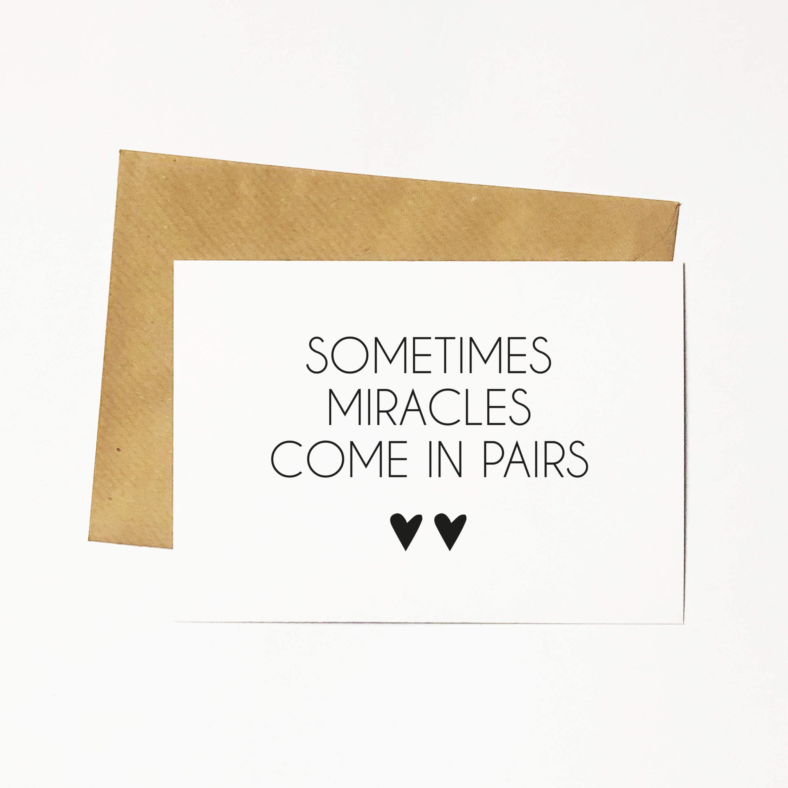 Een kaartje sturen is hartstikke leuk, maar we doen het veel te weinig. Maar wat is nou een mooiere reden dan de komst van een tweeling? Deel je blijdschap met dit leuke geboortekaartje van Hebbers met de tekst ‘Sometimes miracles come in pairs’. Je ontvangt er een kraft envelop bij!
