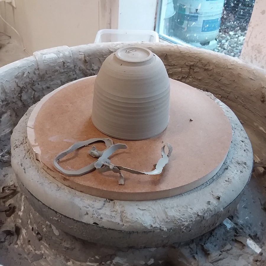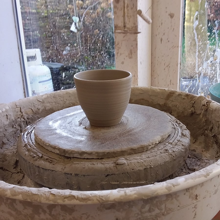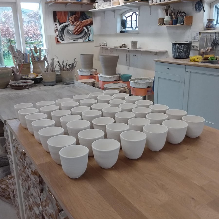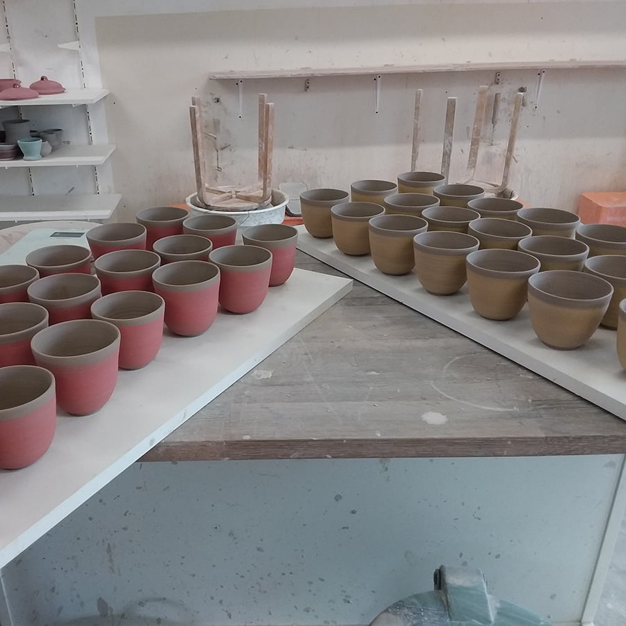 Een paar weken voordat Paul voor mij aan de slag ging, hadden we een afspraak in zijn atelier. Daar heb ik gekeken wat er mogelijk was, welk kopje er lekker vasthield, hoe groot en breed ze moesten zijn, wat voor soort randje erop moest komen en uiteraard de kleur. Ook keken we naar de mogelijkheid om een oor aan de mok te plaatsen.